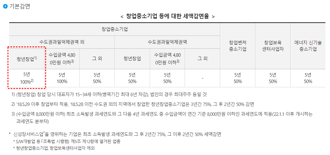수도관 과밀억제권역 외 지역에서 청년이 창업을 하게되면 소득세 100% 감면혜택을 5년간 받을 수 있다.